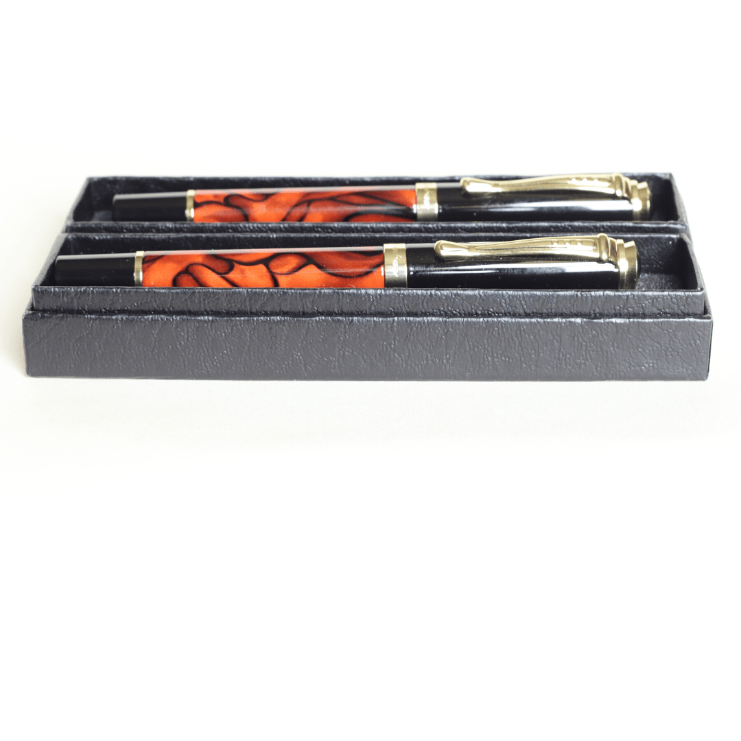 Beautifully crafted, Acrylic Fountain & Rollerball Pen set with gold fittings and finished with polish, black ink refill, in Presentation case, ideal gift.